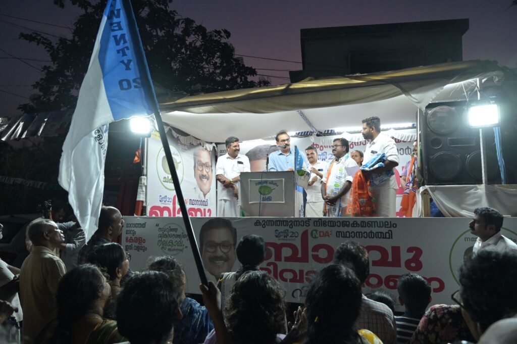 കുന്നത്തുനാട് നിയോജകമണ്ഡലം എൻഡിഎ സ്ഥാനാർഥി ബാബു ദിവാകരൻ നയിച്ച തിരഞ്ഞെടുപ്പ് പര്യടനം വാഴക്കുളം പഞ്ചായത്ത്‌ മുള്ളൻകുന്നിൽ സമാപിച്ചു. കിഴക്കമ്പലം പഞ്ചായത്ത്‌ കാരുകുളത്ത് തുടക്കം കുറിച്ച പര്യടനം പൂക്കാട്ടുപടി, കോൺഫിഡന്റ് ഫ്ലാറ്റ് എന്നിവിടങ്ങൾ പിന്നിട്ട് വാഴക്കുളം പഞ്ചായത്ത്‌ മനക്കമൂല, ബ്ലോക്ക്‌ ജംഗ്ഷൻ, പള്ളിപ്പുറം, ഏഴിപ്രം, എത്തിരിക്കാവ് എന്നീ സ്ഥലങ്ങളിലൂടെയാണ് സമാപന നഗരിയിൽ എത്തിച്ചേർന്നത്. പര്യടനത്തിന് വിവിധ ഇടങ്ങളിൽ സ്വീകരണം ഒരുക്കിയ പാർട്ടി പ്രവർത്തകർ ഷാൾ അണിയിച്ചും സ്ഥാനാർഥിയുടെ തിരഞ്ഞെടുപ്പ് ചിഹ്നമായ ചക്ക കൈമാറിയും ബാബു ദിവാകരനെ ആദരിച്ചു. സമാപന സമ്മേളനത്തിൽ ട്വന്റി 20 പാർട്ടി അധ്യക്ഷൻ സാബു എം ജേക്കബിന്റെ സാന്നിധ്യം പ്രവർത്തകരെ ആവേശത്തിലാക്കി.