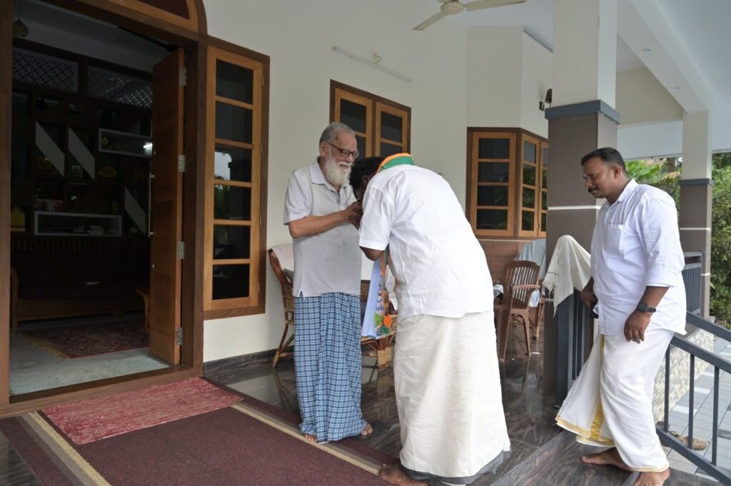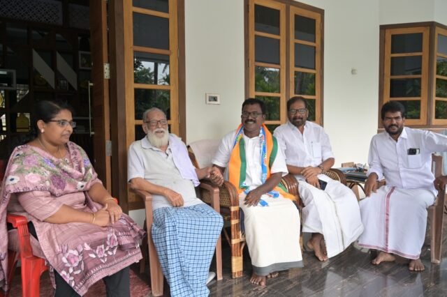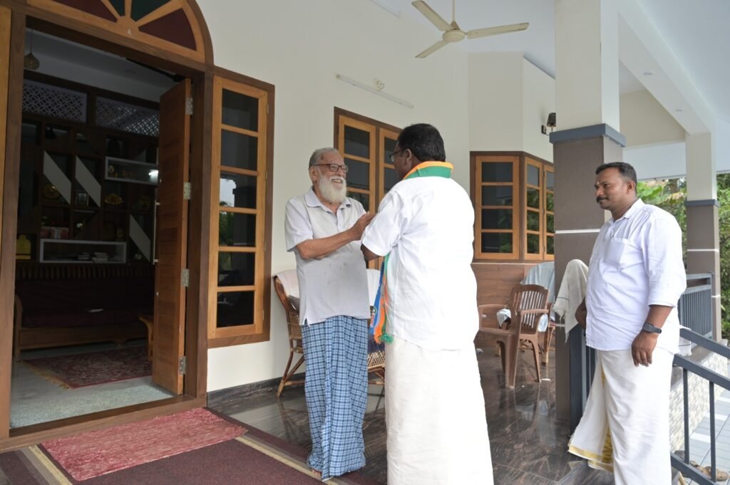 മുടവൂര് സെന്റ് ജോര്ജ്ജ് യാക്കോബായ പള്ളി വികാരി ഫാ. തെക്കുംചേരിയിലിനെ വീട്ടിലെത്തി സന്ദര്ശിച്ച് അനുഗ്രഹം തേടി കുന്നത്തുനാട് നിയോജകമണ്ഡലം എന്.ഡി.എ സ്ഥാനാര്ത്ഥി ബാബു ദിവാകരന്. എന്ഡിഎ കുന്നത്തുനാട് നിയോജകമണ്ഡലം കണ്വീനര് വി എന് വിജയന്, ബിജെപി മണ്ഡലം സെക്രട്ടറി സുമേഷ് സോമന്, ബിജെപി ജില്ല വൈസ് പ്രസിഡന്റ് ഗോപാലകൃഷ്ണന്, ബ്ലോക്ക് മെമ്പര്മാരായ ബിന്സി ബൈജു, ബബിത, വാര്ഡ് മെമ്പര് രാജി, ജി അനിലന് എന്നിവര് സ്ഥാനാര്ഥിയെ അനുഗമിച്ചു.