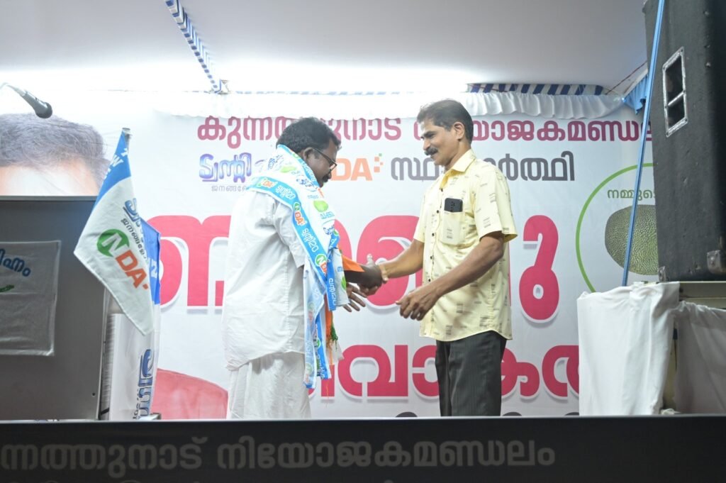 നാടിന്റെ വികസനത്തിലൂടെ ലോകശ്രദ്ധ പിടിച്ചുപറ്റി, അധികാരം ഉണ്ടെങ്കിൽ നാടിന് നല്ലത് ചെയ്യാൻ കഴിയുമെന്ന് തിരിച്ചറിഞ്ഞു രാഷ്ട്രീയത്തിൽ സജീവമായ പാർട്ടിയാണ് ട്വന്റി 20. ഇതേ സാഹചര്യത്തിൽ ഭാരതത്തെ ലോകത്തിന്റെ നെറുകയിൽ എത്തിച്ച നമ്മുടെ പ്രധാനമന്ത്രി നരേന്ദ്ര മോദിജി ട്വന്റി 20യുടെ വികസന മാതൃകയിൽ ആകൃഷ്ടനായി. നാടിന്റെ വളർച്ച മാത്രം സ്വപ്നം കാണുന്ന രണ്ട് നേതാക്കൾ ഒത്തു ചേർന്നപ്പോഴാണ് ഈ മുന്നണി രൂപപ്പെട്ടത്. അധികാര മോഹമില്ലാത്ത, വികസനത്തിന്റെ രാഷ്ട്രീയം പറയുന്ന എൻഡിഎ മുന്നണിയെ ഈ തിരഞ്ഞെടുപ്പിൽ അധികാരത്തിൽ എത്തിക്കുകവഴി കുന്നത്തുനാട്ടിലേക്ക് വികസനത്തിന്റെ കുത്തൊഴുക്ക് കൊണ്ടുവരാൻ സാധിക്കും. കുന്നത്തുനാട്ടിൽ വിജയിച്ചാലും ഞങ്ങളുടെ സഹായം ലഭിക്കാൻ പോകുന്നില്ലെന്നു ഇടത് വലത് മുന്നണികൾ വാതിക്കുമ്പോൾ അവരോട് നമുക്ക് പറയാനുള്ളത്, ഞങ്ങൾ വിശ്വസിക്കുന്നത് ഈ ഭാരതത്തെ നയിക്കുന്ന മോഡി സർക്കാരിനെയാണ്. കുന്നത്തുനാട്ടിൽ നടപ്പിലാക്കാൻ പോകുന്ന കേന്ദ്ര പദ്ധതികളിലൂടെയാകും നാം ഇടതിനും വലതിനും മറുപടി നൽകുകയെന്നും അദ്ദേഹം കൂട്ടിച്ചേർത്തു. സംഗമത്തിൽ നൂറു കണക്കിന് പാർട്ടി പ്രവർത്തകർ പങ്കെടുത്തു.